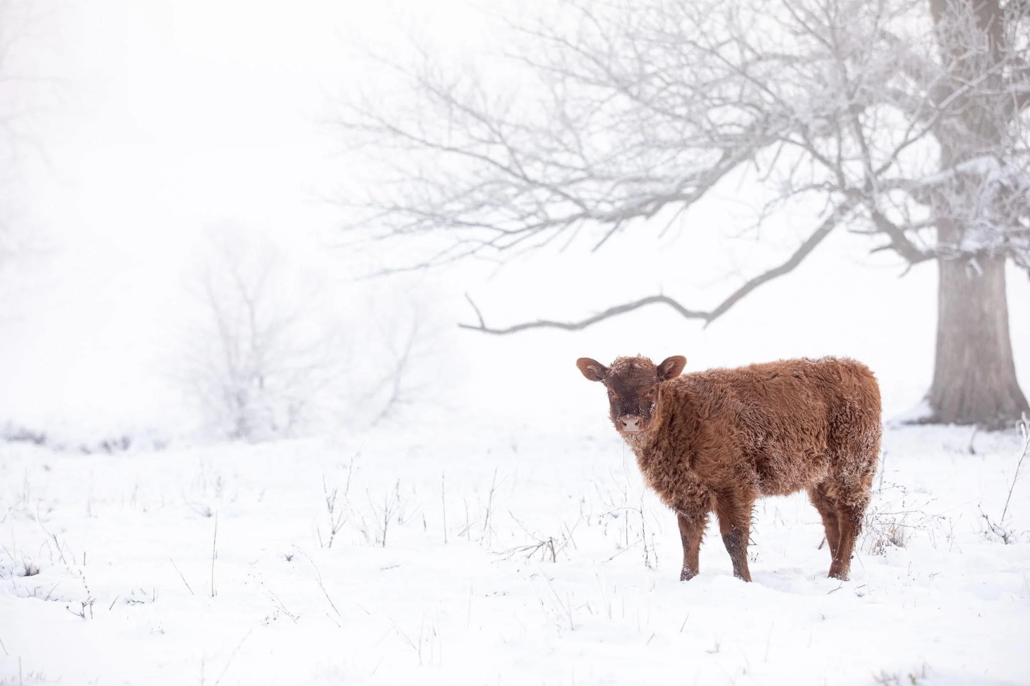 Calf in snow - Centralia, Missouri - Mid January 2022
